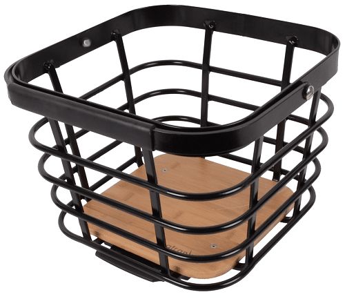 Cykelkurven er lavet i aluminium med træbund. En virkelig god robust og stabil cykelkurv.