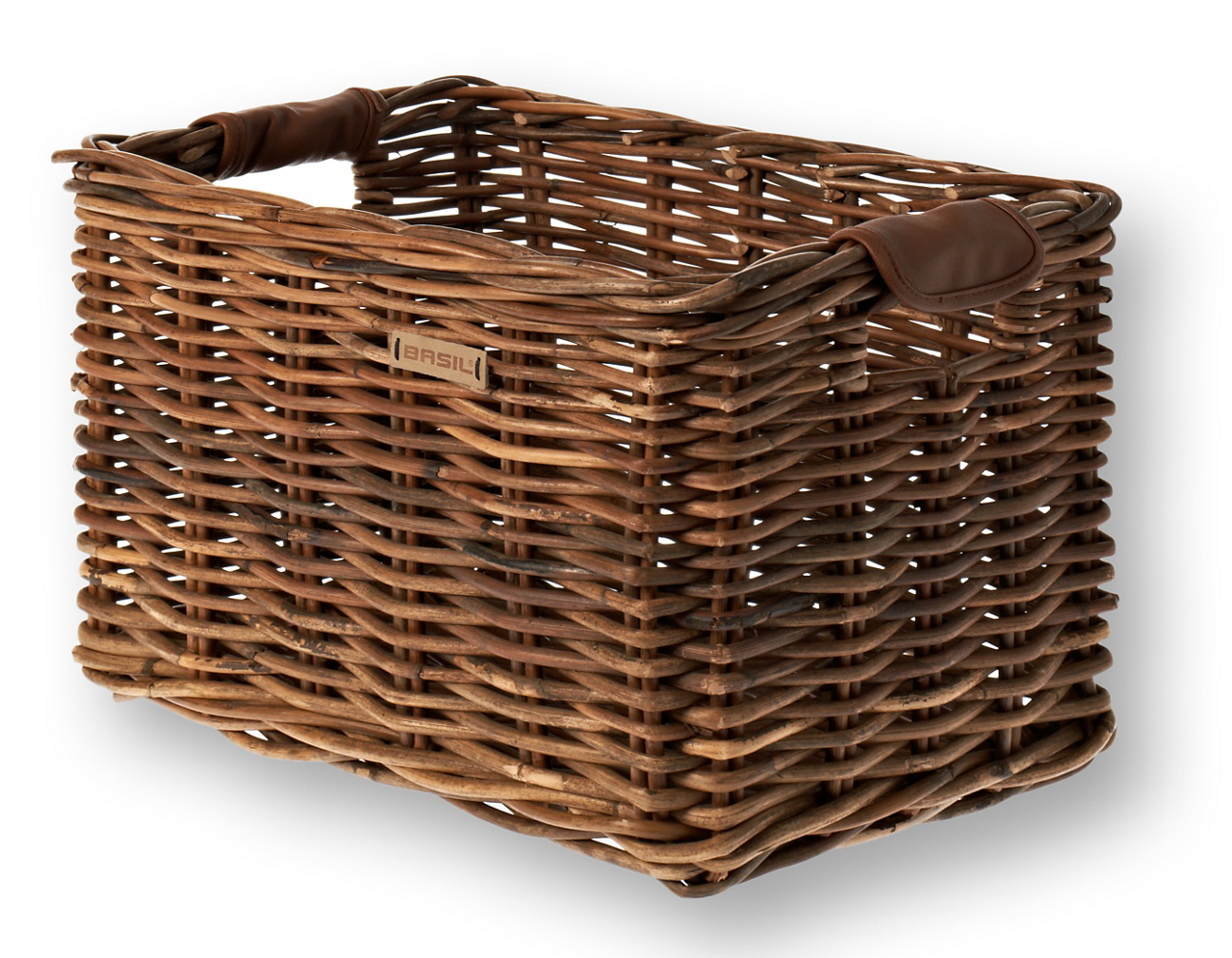 DORSET M, cykeltransportkurv af rattan, rektangulær, 35x24x24cm, uden låg, håndtag med kunstlæderdetaljer, uden fastgørelsesmateriale, naturbrun