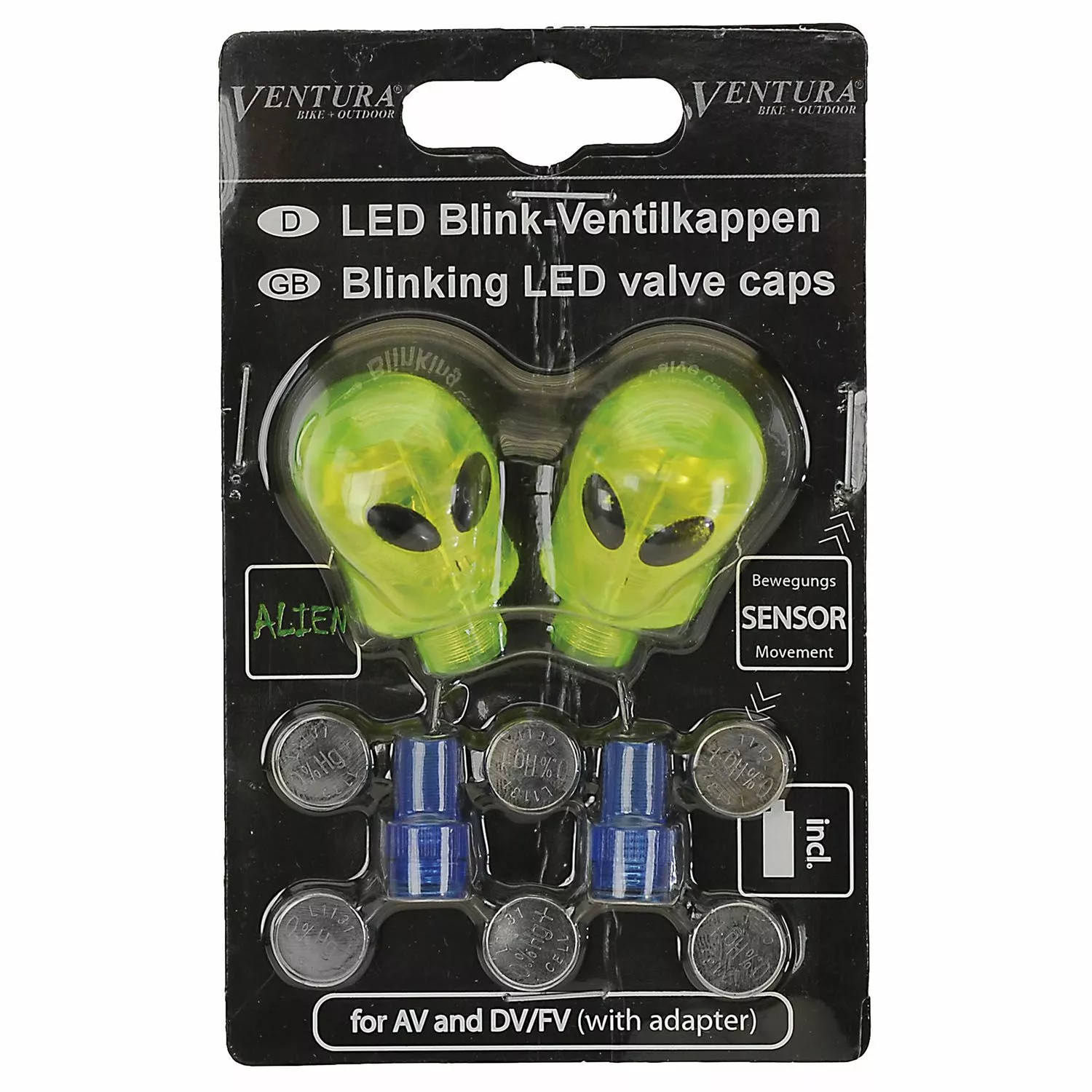 Inkl: batterier til AV, med adapter til DV / FV type batteri knapcelle LR1131 grøn LED